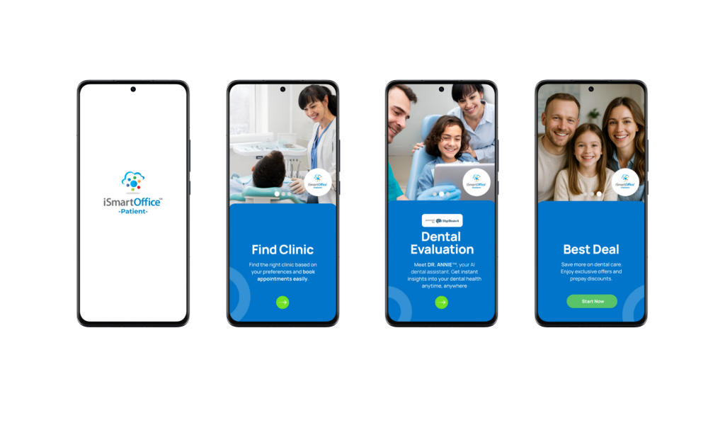 When you first open the app, you’ll see an introductory (boarding) screen that explains the basic functions of iSmartOffice™ Patient.