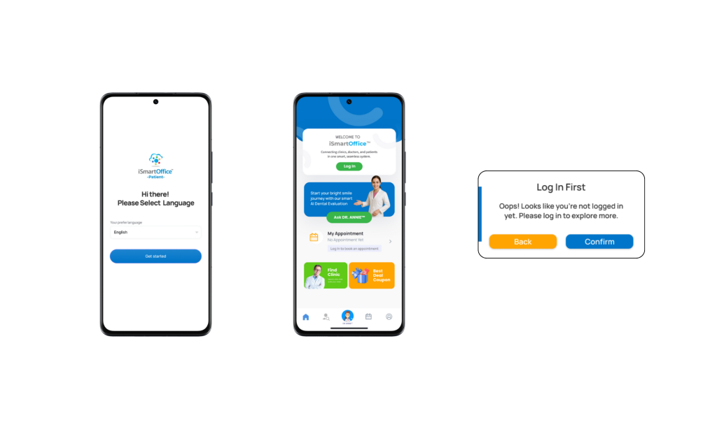 After selecting a language, you will see a preview of the iSmartOffice™ Patient dashboard app.