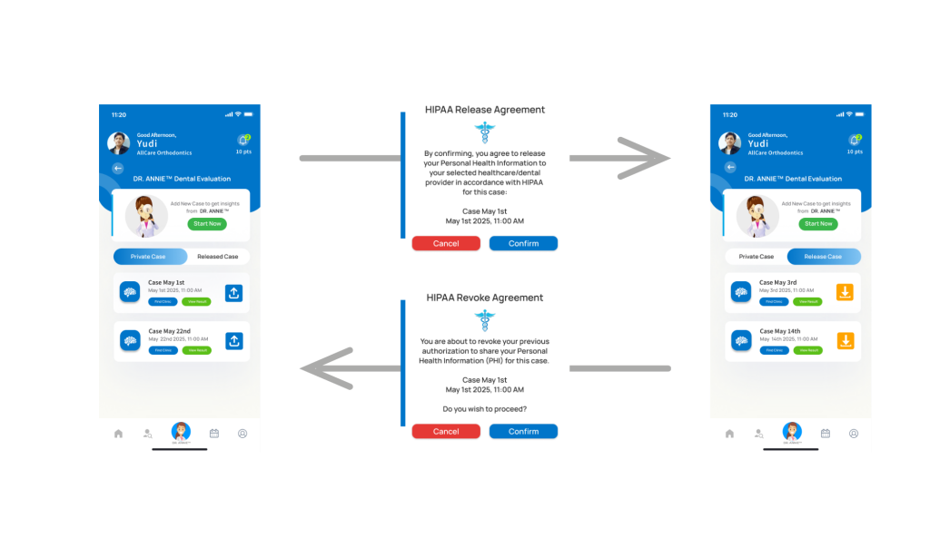 - Released Tab – Contains evaluation cases that have been submitted and shared (released) with dental providers, following Personal Health Information and HIPAA compliance standards. These cases are visible to providers who may assist you as a patient.
