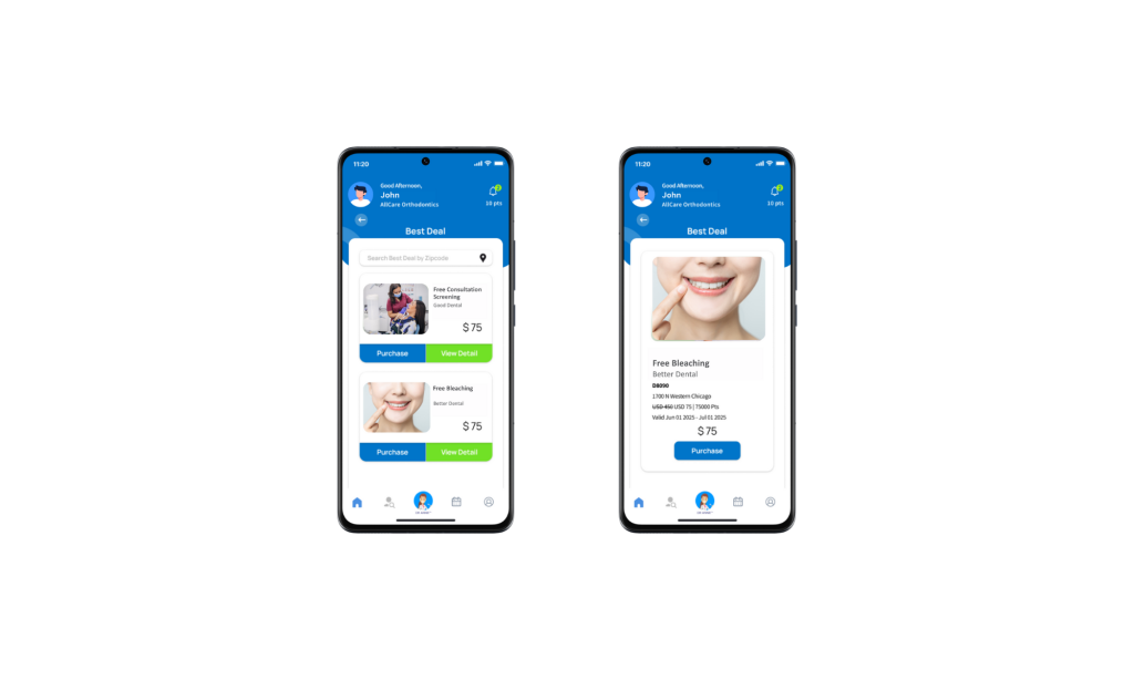 The Best Deal section displays promotional offers from clinics, such as discounts, free treatments, and other special deals that you can redeem directly at the participating clinics.